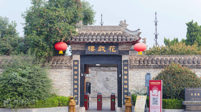 花戏楼又称山陕会馆,大关帝庙。是明清时期山西、陕西商人聚会的地方,历史悠久,因关羽是山西人,因此他们在此建关公庙。花戏楼精致漂亮拥有许多乾隆年间的绚丽的彩绘和精湛的雕刻,是全国重点保护单位。 花戏楼有 “三绝”:正门前两根旗杆, 花戏楼的木雕和山门。花戏楼的砖雕巧夺天工,属徽派微雕艺术。 花戏楼位于亳州城北关,涡水南岸,始建于康熙年间清康熙年间,供演戏。院内以大殿为主建筑,戏楼辅衬,坐楼建于两侧,供看戏饮筵用。形成四全院,四围高大,音响不易疏散。