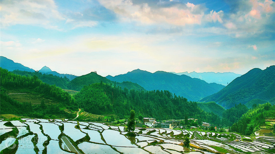 欧家梯田位于广东省清远市连山壮族瑶族自治县太保镇欧家村,地处被誉为“广东岭南屋脊”的连山较高的山峰大雾山麓,海拔400-800米之间,一年四季气候分明,年平均气温为18.9°。它四面环山,森林覆盖率达百分之93,负离子含量很高,是氤氲天地山水灵气的天然森林大氧吧。这里春回醉山花,夏至山峦翠,秋来金穗灿,冬披银毯妆,是四季皆宜的旅游度假之地。 它被誉为中国十大较美梯田,1000多亩梯田呈M字型分布在欧家村周围,是广东省规模大、原始生态的梯田。层层叠叠的梯田依山势延绵而下,蜿蜓起伏,婀娜多姿,阡陌纵横,移步换景。随着季节的转换,梯田呈现不同景观。