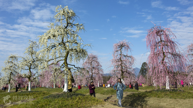 问花村位于都江堰的青城山下,比邻街子古镇,是大青城旅游经济带盆地边缘的大型生态缓冲和生活喘息空间,是“两弹一星”众星拱卫下不断打造、提升、优化和完善的乡村综合体和以花为主题的农旅观光世界。梅花和海棠是问花村的原子弹和氢弹,是问花村的核心竞争力。问花村是梅花和海棠稀缺园艺资源的规模收藏者和品类资源的集大成者,是全球梅花和海棠专类主题园林的佼佼者。问花村的红粉佳人樱、阳光樱和染井吉野樱组合成的农田林网与油菜花和水稻轮作示范基地以及稻与鱼共生示范基地的规模集成是国内外田园风光的特色和首创。“樱花+油菜花”是主卫星,其它的花系是辅助和补充。问花村常开不败、永不凋谢的是乡村振兴之花。立春即春季的开始,时序进入春季。此时虽依然春寒料峭,但寒冬已尽,春回大地,万物复苏,大自然生机勃发。【梅花园】龙型垂枝梅是问花村最重要的核心竞争力之一,是中国古代皇家园林专享花卉。问花村梅园是世界上栽植园艺造型垂枝梅数量最多的专类主题园林,填补了国内的空白,规划1200棵,现已栽植1000余棵,规模之大,壮观震撼,美的无与伦比、美的无法复制。问花村的垂枝梅主要有开yun垂枝、粉红垂枝、白碧垂枝、残雪垂枝和锦红垂枝,花色有粉红色,红色,和绿白色等品种。主要特征是枝条象柳树一样自然下垂或斜垂,形成独立的伞状树冠。人们常说,少女之心总是诗,是粉红色的诗。粉红色的垂枝梅花,如情窦初开,芳心萌动的少女,S型的身段婀娜多姿,楚楚动人。弱柳扶风的枝条宛如秀美的长发飘逸灵动,掩面垂头,带着十二分的羞涩,如描似画,柔情似水。花形秀美多样,花姿优美多态,花色艳丽多彩,气味芬芳袭人。置身其中赏心悦目,遐思无限,让人流连忘返。在绚丽的阳光下撩拨芳心,把少女之心表达的淋漓尽致。【海棠园】问花村的第二个核心竞争力就是海棠。海棠花妩媚动人,明艳之余不失端庄大气,向来有“花中神仙”、“花贵妃”之称,雨露天气后更是清香犹存。新春之际,正是到问花村观赏海棠的好时节。问花村的千亩海棠园收藏并栽植了数十万棵海棠,是国内木瓜属贴梗海棠园艺资源的规模收藏者。在这里你能看到由成规模的海棠盆景和珍稀园艺艺术品集聚成的花海,能感受到海棠花海给你带来的视觉冲击力和对心灵的震撼力。问花村海棠园的核心景点有五福临门、牌坊群、龙马精神、四平八稳、时空隧道、海棠花仙谷、海棠小微盆景产业化示范区和海棠种植基因库等景点。【樱花谷】樱花是问花村两弹一星的主卫星。问花村浪漫樱花谷将油菜与水稻轮作传承示范基地,稻与鱼共生系统传承示范基地,油菜与玉米轮作、玉米与红薯间种、玉米与豇豆套种示范基地,生姜与土豆轮作示范基地、粉黛乱子草、马鞭草、向日葵、榆叶梅、中华木绣球、五月玫瑰、荷花、五彩春光、香雪海、杉木湿地公园与红粉佳人樱、染井吉野樱、阳光樱、大渔樱等优秀的樱花品种聚合而成,展现了别样的灿烂春光,此景让人不禁赞叹“美的别具一格,美的您流连忘返!”阳春三月的问花村,樱花与油菜花相遇,浪漫与灿烂相随。根据我们的规划,来年还可以在油菜花里与蜜蜂共舞,在樱花林中听樱花下雨,在樱花树下品“问花之锅”,可谓樱花烂漫,浪漫火锅。油菜花像火锅一样热情似火,让你感受春天的希望和灿烂;樱花像热恋的情侣温馨和浪漫,让你感受爱情的美好和温暖。问花村浪漫樱花谷,油菜花的灿烂遇见樱花的浪漫,你是否也能在樱花树下邂逅一段美丽的姻缘,拥抱一段浪漫的爱情呢!