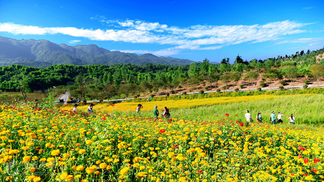铜梁奇彩梦园于南城街道黄门村,紧邻玄天湖龙温泉度假区,蜿蜒秀美的淮远河穿境而过。这里花儿多得数不胜数,是一个赏花游玩的好地方。铜梁奇彩梦园主要由风情小镇、四季花海观赏区、情人树三个大的景点组成。奇彩梦园核心花海共占地近1000余亩,种植有60多种花卉苗木品种,每季花卉都不同,春季以高贵的郁金香为主,夏季以火热奔放的硫华菊、波斯菊、向日葵、马鞭草为主,秋季以优雅的唐菖蒲、百合、鸡冠花为主,冬季以耐寒的菊科类花卉为主,景区按照“山头做景点,道路做景观带,大田做四季主题花卉的打造思路做到四季有花看,季季景不同是我们奇彩花海的主要特色!景区内还设有多种游乐设施,如小火车、游船、滑草、射箭、碰碰车、碰碰船、卡丁车、极光爆瓶、等十余种游乐项目。