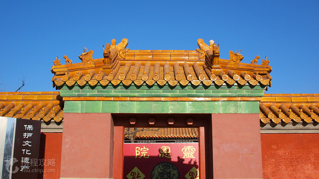 明昭陵位于北京昌平区大峪山东麓,紧挨着定陵,是明朝第十二位皇帝明穆宗朱载垕及其三位皇后的合葬陵寝。昭陵规制在十三陵中属中等规模,但与泰、康等陵宝城模式相比较,显得更加精致壮观。其神道从长陵神道七空桥北向西分出,长约2公里。近陵处建碑亭一座,亭后建并列单空石桥三座。陵宫总体布局呈前方后圆的形态,宝城前设两进院落,方城下的甬道,另有棱恩殿、配殿五间,棱恩门三间。昭陵的很大特点是率先形成了完备的“哑巴院”制度。其宝城内的封土填得特别满,几乎与宝城墙等高,正中修建夯土墓冢,封土前用砖墙挡住,与方城两侧的宝城墙内壁相接,形成了一个封闭的月牙形院落。现在我们前往昭陵,可以看到已经修复好的棱恩殿、棱恩门、两庑配殿、神功圣德碑亭、宰牲亭、神厨、神库等。另外在其左右配殿分别设有“明昭陵帝后史料陈列”和“明代皇族墓葬史料陈列”,介绍朱载垕和他的三位皇后、妃嫔的相关事迹和明代亲王、妃嫔的墓葬规制。