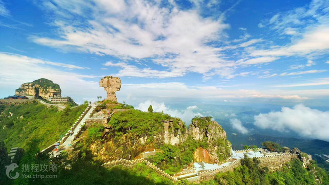 如果说“太行山把美的一段留给了南太行,那么南太行美的一段便是轿顶山了。”此山龙行高亢、气脉绵长,属古都朝歌之祖脉,现存赵、魏长城遗址、历史悠久的天云观、神奇独特的摩崖石刻、健全的中国古代官制文化等,观云海圣境、走九五官道,拜道家殿宇,看龙脉长城。这里四季皆景,步趋景移。春来花烂漫,千蝶竞舞;盛夏云海仙山,百鸟鸣涧;秋至层林尽染,多彩纷呈;冬雪如画,山舞银蛇正是轿顶山的真实写照。在这里可以寻找到原始的自然风貌,是一处纯净的旅游圣地,适合户外探险、艺术写生、摄影绘画、旅游观光。