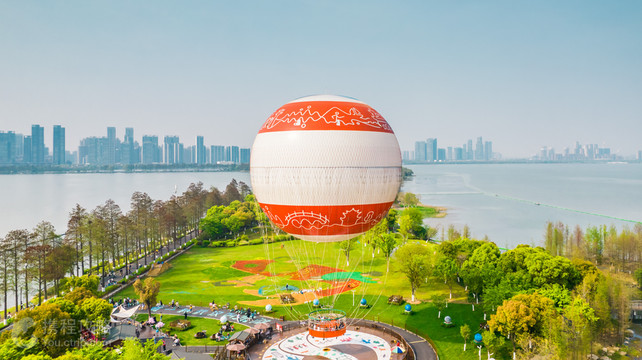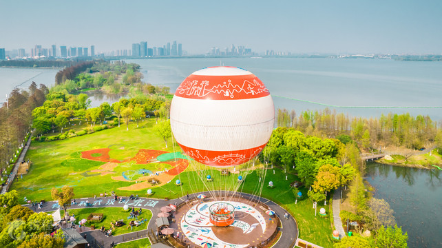 东湖观光氦气球集观光、游览、休闲、科普等功能于一体,是华中地区空中旅游观光氦气球项目。“东湖彩旦”富含多层寓意,“彩”有精彩、光彩之意,“旦”本意指旭日东升,“彩旦”音同“彩蛋”,寓意东湖精彩将从元旦开启,源源不断、众彩纷呈,“东湖彩旦”将从东湖升起,一飞冲天、蒸蒸日上,游客朋友将从新年开始,鸿运当头、福气连连。 “东湖彩旦”直径23米,球体达6000立方米,可同时容纳30人乘坐,垂直升空可达高度为150米,升至高处时,游客可从“上帝的视角”360度全方位俯瞰东湖美丽景色及周边城市风貌,感受在空中翱翔的自由和惬意,实现“水陆空”全方位的东湖之旅。