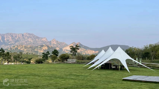 石老山温泉康养度假村位于东港区南湖镇石老山村马陵水库北300米景色优美 露营的好去处 园区内种植粉黛园 随手一拍既是大片。