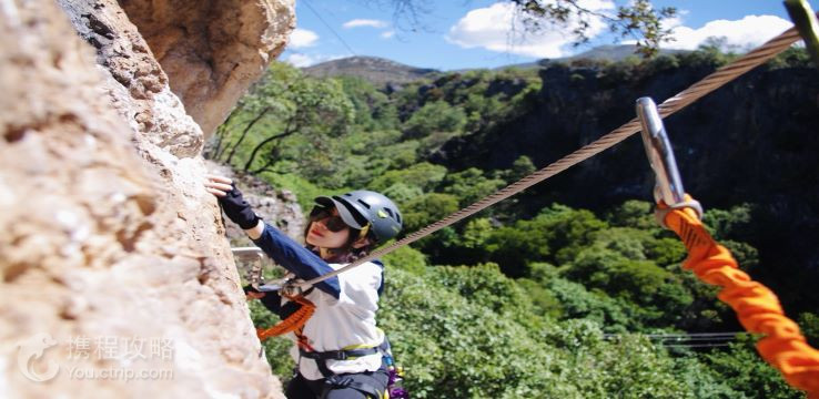 东巴探险中心位于丽江古城仅15公里的东巴谷内,比邻玻璃栈道,是丽江一家原生态户外高空体验目的地。 中心拥有飞拉达攀岩、运动攀登、悬崖秋千等高空体验项目,其中飞拉达攀岩又称“铁道式攀岩”,是修在岩壁上,利用铁索、脚蹬的辅助,进行峭壁攀爬的登山方式,既保留了野外攀爬的惊险刺激,又是运动小白能玩的高空项目。如此刺激的体验除了攀爬项目,还有钢丝桥、云梯和连接两山之间的高空吊桥,还有划过峡谷的尖叫溜索。
