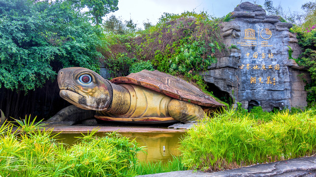 湖光岩风景区位于湛江市区西南部约19公里处,是著名的湖光岩风景区火山口风景区。湖光岩风景区大约形成于20万年前,是我国现存的三座火山湖之一,也是世界上除德国的Manderscheid之外仅有的玛珥湖。这里的地质特征兼有海岸地貌、构造地质地貌等多种地质遗迹,自然风光极好。湖光岩风景区为中国玛珥湖的典型代表,湖底的沉积物真实的记录了十多万年以来古气候、古环境的变化情况,蕴藏着丰富的热带亚热带气候环境的变化的信息,被专家们誉为“天然环境变迁年鉴”。湖光岩风景区为火山垣环抱,湖水清澈如镜,湖四周悬崖陡壁,火山岩层理、韵律清楚。公园内古树难天,古藤缭绕,植被茂盛,有一片高密度空气负离子区,堪称“天然氧气吧”,人在湖滨漫步,倍感心旷神怡。园区历史悠久,早在隋朝时期,佛教僧人就依岩而建楞严寺、白衣庵等古刹,宋朝丞相李纲题写的摩崖石刻“湖光岩风景区”存留至今。关于玛珥湖:玛珥湖是一种极其稀有的火山湖,是由火山爆发冷却后,陆地上下沉的积水形成所致。湖水因为来自于地下水的渗透,具有天然的自我净化功能,所以无论旱涝都永远不会干涸。