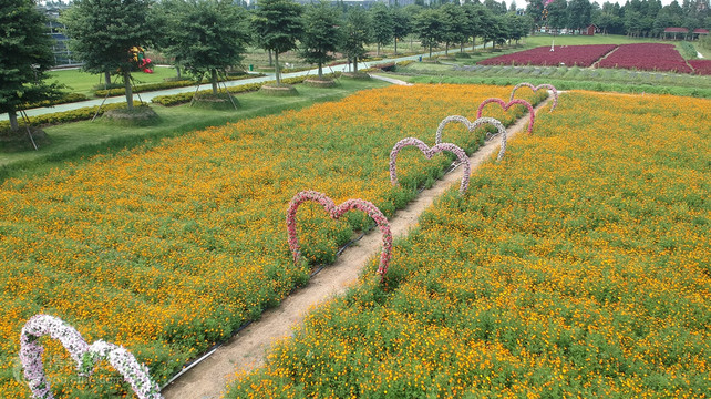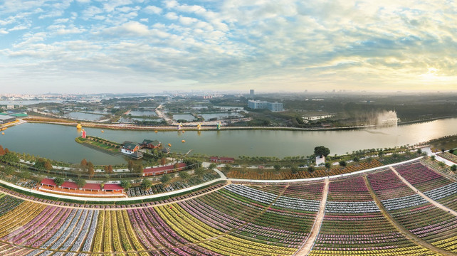 梦里水乡百花园是以花海、水乡民宿为主题,将人、花、生活融为一体的花海主题公园。园区内种植有过百种花卉,有太阳花、醉蝶花、百合花、郁金香、金鱼草等多种国内外名花。园内还有华南较大的观赏性玻璃温室,里面种植10种不同颜色太阳花,可供游客一年四季入园观赏。园区内还种植多种不同季节开花的名贵树木,如:大腹木棉、黄花风铃、宫粉紫荆等等……除了让人心醉的观花,可以坐上小火车,也可以踩用单人、双人、三人的自行车绕园一周穿梭花海之间观赏各式美景。游客可以在天鹅湖上体验小黄鸭、竹排等脚踏娱乐项目,以及儿童种植科普教育基地。