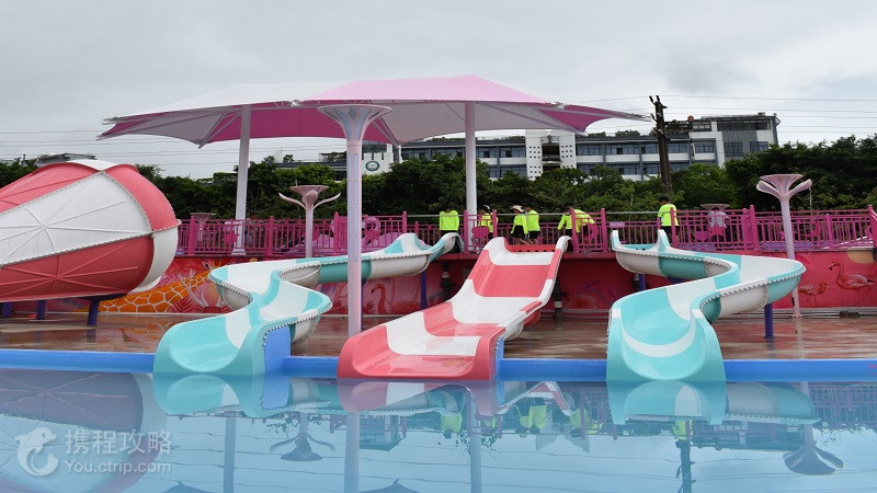 星高度梦想水世界是粉色主题亲子水世界,拥有三大主题:遇见海豚湾-动感冲浪剧场、独角兽城堡-浪漫彩虹水寨、火烈鸟之森-梦幻森林漂流,有丰富的游玩项目包括造浪池、彩虹滑道、空中透明玻璃漂流河等,不用去海边也能与浪花亲密接触,体验被海浪冲击的快感,园内还有各式各样的粉色卡通造型、巨型粉色独角兽,设计感十足,随手一拍分分钟拥有大片。