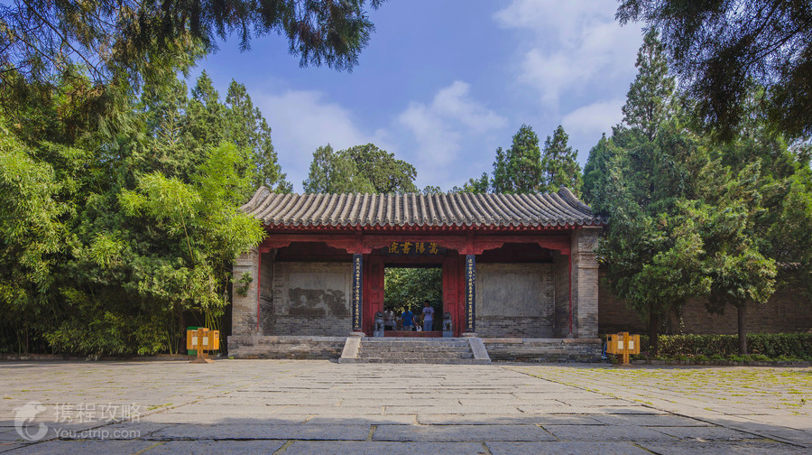 嵩阳书院,位于登封市区以北,因为地处嵩山之阳(南),所以得名。它背依嵩山的主峰——峻极峰,面对流水潺潺的双溪河,两侧被山峰环抱,书院内外古柏参天,梅、柳、松、竹、银杏等应有尽有,满目苍翠。 嵩阳书院原名为嵩阳寺,创建于北魏孝文帝太和八年(公元484年),为佛教场所,在隋炀帝时期改为道教场所。宋仁宗景祜二年(公元1035年)改名为嵩阳书院,以后一直是历代名人讲授经典的教育场所。宋代“洛派”理学家程颢、程颐、司马光,范仲淹等都在这里讲学授课;司马光著的《资治通鉴》有一部分就是在完成的。北宋中期王安石变法时,在这里常同司马光、范仲淹论证学说。 嵩阳书院面积并不是很大,进入大门后沿着中轴线步行向前游览即可。书院内建筑布局保持着清代的风格。进入景区后,首先能看到先师庙,供奉与书院有关的各位先师先贤,之后是嵩阳书院-讲堂、道统祠,最后是嵩阳书院-藏书楼。在轴线的两侧是原先的“程朱祠”、书舍、学斋等。在书院的西偏院,你还能看到清代嵩阳书院教学考场的部分建筑。 游览嵩阳书院,有几件文物不得不看。在进入大门后,你能看到一块唐代的碑——《大唐嵩阳观纪圣德感应之颂》,这块碑立于唐天宝三年(公元744年),记载了当时道士为唐玄宗炼丹的事情。在院中你还能看到二棵“将军柏”,树龄在4500年以上的柏树,据说是由汉武帝在西汉元封元年(公元前110年)赐封为“将军”。 在书院的藏书楼中,你一定不能错过“武后金简”,据说当年武则天称帝之后,效仿历代帝王,来嵩山祭天,留下向天帝乞福的手书金笺一封,乞求中岳嵩山神免除武则天皇帝一切罪名,使大周江山万万年。如今保存在嵩阳书院的是复制品。