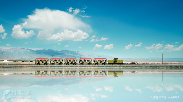 茶卡盐湖是一座有三千多年历史的盐场,湖水含盐量很大,会自然结晶成为一片白色的湖面,将天空、云朵和对岸的山都倒映在湖里,景色非常漂亮。游客还可以赤脚走到湖面上观看和拍摄自己的倒影,犹如天空之境。 茶卡盐湖在晴天时湖水结晶度很高,可以看到洁白的盐湖上覆盖一层薄薄的卤水,景色和倒影清晰又纯净。在景区雕塑区你可以看到石雕的盐湖守护女神,除了该雕塑外,其它约十几座巨大的雕塑都是盐雕,有弥勒佛、成吉思汗等造型。 沿着通道走到湖边,就可以看到洁白纯净的茶卡盐湖,尽情游玩。湖中间有一条铁路延伸至湖内,起点处便是乘坐小火车的地方,可以乘车前往湖内深处,那里的景色更为纯净。