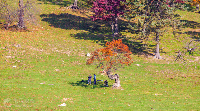 长白山溪谷景区位于临江市花山乡老三队村的崇山峻岭之中,它的特色就是在山脊上有一片广阔无垠的草原,成群的牛和羊在其中悠闲漫步,在四周五彩缤纷的山林包围之中,好似一片隐世乐土。 从山下大门口驱车到达山脊的草原大约10公里路。当你到达山顶,等待你的是一片山脊草原,让你眼前一亮,心情舒畅。这里美丽的高山草场,其实不是自然形成的,是上个世纪六七十年代,当地林场在这里大兴采伐,形成了一块块空地,而后慢慢形成的。 溪谷和其他东北较为出名的景点相比显得更加原始和纯朴,这里的秋色尤其迷人,那些巨大的枯树和断枝不规则地散落在地上,显得苍凉而孤寂,而满地的落叶就像是彩色的地毯,让溪谷更显生气。