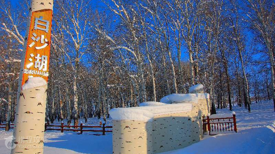 白沙湖位于哈巴河县西北侧的185团三连(由于新疆生产建设兵团是以民兵为主的屯垦团,这里的团和连都是指一个地区,一个连大约相当于一座村子),距离哈巴河县城的车程约70公里,布尔津县城车程约160公里,是一处沙漠环绕的宁静湖泊。白沙湖外围有连绵起伏的沙漠,但湖边却绿树成荫,湖面水波粼粼,强烈对比的画面十分奇幻。每年秋季是游玩白沙湖热门的时节,此时湖边的树叶都变成红黄两色,非常鲜艳,是拍摄红叶好的地带。夏天时前来也很不错,湖中可以看到新疆少见的莲花开放。冬天和初春时这里则会非常寒冷,湖面也会封冻,不适合前来游玩。白沙湖景区的大门位于Z840公路旁,景区大门到湖边还有约2公里的路程,可以步行前往,也可以购买10元的往返车票乘电瓶车直达湖边(电瓶车为循环发车,返回时可以随意乘坐任意一辆)。到达湖边后,便可沿着木制栈道步行游玩。在湖边漫步观光是游玩白沙湖景区主要的内容,湖边的木制栈道大约长1公里,步行在栈道上,可以尽情欣赏树影婆娑的湖滨美景。栈道的尽头是一处观景台,这里观看湖泊的视野比较开阔,对面正好有一座沙山倒映在湖面上,画面旖旎,是拍照好的地方。游玩湖边后,返回景区大门时建议步行。因为在景区大门和湖区之间还有一处沙丘可以游玩,沙丘不高,顶部修筑了一座凉亭,从公路登上凉亭大约需要15分钟左右。由于白沙湖景区离国境线很近,所以附近可以看到对面哈萨克斯坦的风光,而这座凉亭就是附近好的观赏点,可以在此看到对面宁静的村庄和树林,视野非常开阔。另外,返程到快到景区大门时,还有一小片漂亮的白桦林,可以漫步林中,拍摄美丽照片。餐饮住宿游玩白沙湖景区大约需要3个小时左右,游客在游览景区后一般都会在景区附近用餐。景区大门的对面便是兵团185团三连的所在地,连里的居民都是从内地前来戍边的汉族人,自己在小院子里种满了蔬菜,基本上家家都开了餐馆。如果你已经在新疆吃了很久的重口味菜肴,这里味道清淡的正宗汉族农家菜一定会让你有深深的亲切感。而且在此用餐价廉物美,非常实惠。如果是夏秋季节前来,还可以直接在菜园子里指着时蔬点菜,品尝到正宗的新鲜蔬菜。前来白沙湖,一般是从布尔津或哈巴河县城包车前来,两地均可以一日往返,一般游客均会返回布尔津县城或哈巴河县城住宿。两地接待条件都很好,各档次的酒店、青年旅舍都有,选择丰富。