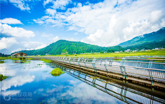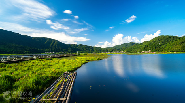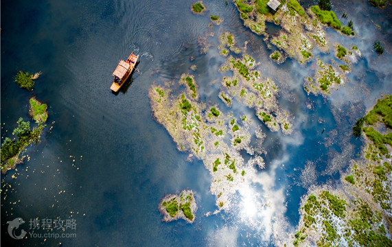 北海湿地位于云南省腾冲市区东北部12.5km处,是中国仅有的火山堰塞湖浮毯型湿地,景区四面环山,是60万年前新生代火山喷发而形成的亚热带火山岩堰塞湖,营养丰厚的火山灰孕育了大片漂浮于水面的草甸,形成五彩缤纷的巨型水面浮毯。湿地因其高山森林、水面浮毯及堰塞湖泊构成的立体生态系统,使其生物多样性而闻名,被誉为“地球之肾”“湿地物种基因库”。300多年前明朝旅行家徐霞客曾亲身到此一游,在他的《滇游日记》中留下对北海湿地神奇景观的描述“海子大可千亩,中皆芜草青青,下如草浮结而成者,亦有溪流贯其间第不能起”。这里海拔1750米,负氧离子高达1.6万个/立方厘米,PM2.5常年小于10,是世界公认的长寿宜居海拔区,是您避暑避寒、美景鲜氧、度假养生的好地方,您可以搭乘小船竹筏水中漫游,感受鱼虾飞鸟伴随左右,清风徐来,水波不兴,悠然自得。在这里您可以体验草排、踩草、踩鱼、烤鱼等,享受自然的乐趣。这里设有漂浮水上栈道,让您能更近距离地接触到湿地的多种珍贵鸟禽和奇异花草,包括被称为“鸟中大熊猫”的青头潜鸭、“植物大熊猫”莼菜等上百种珍稀动植物,体验自然课堂的生动乐趣。在这里,您可以感受到“春赏鸢尾浪漫”“夏享云海清凉”“秋拍多彩花海”“冬观候鸟群集”独特四季体验,乐享北海湿地山海间的美好相遇。