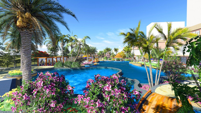度假村占地面积46389平方米,规划总建筑面积71190平方米。度假村拥有设施配套齐全的花园酒店、充满浓郁东南亚风情的冰泉水世界、温泉等丰富的度假项目,是一个集自然风光、休闲娱乐、健康、商务会议与一体的旅游度假名地。结合自然景观与园林建筑与一体的水世界,鸟语花香,水天一色,救生员全程守护,尽享碧波畅泳的乐趣。琳琅满目的水果盛宴,让您在舒解身心的同时,带给孩子们一个色彩缤纷的夏天。在这里您可以点上一杯新鲜的果汁或鸡尾酒享受日光浴的乐趣,漫步在印尼风情的“果城水都”。这里也是您和家人、朋友们举办池畔派对的佳选择。乐园有大型儿童乐园区、多款冰果、冰酒、花茶等半百数量的泡池。另外,附设有干蒸、湿蒸、冷冻房。休闲餐饮配套齐全。男女更衣室均设有贵宾休息区,热情、周到、温柔、细腻的亲情服务,让您重焕身心!为您在炎炎夏日打造一个避暑乐园。