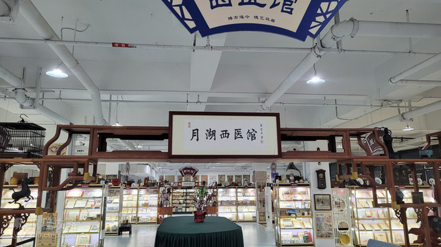 月湖中西医博物馆位于月湖雕塑公园门口佘山林荫广场,由沪上知名收藏家上官万平先生出物、出资建设,是我国第一所完整展示医学发展历史的专题博物馆。博物馆位于佘山国际旅游度假区,功能面积1300平方米,展出面积1000平方米,有文献类、处方展示、手工、药械等维度的展示区域。博物馆日常展出6000余件,涵盖老药、器械、证书、信札、书画等三十余品类。60%的展品历史逾70年;90%的展品逾50年。
