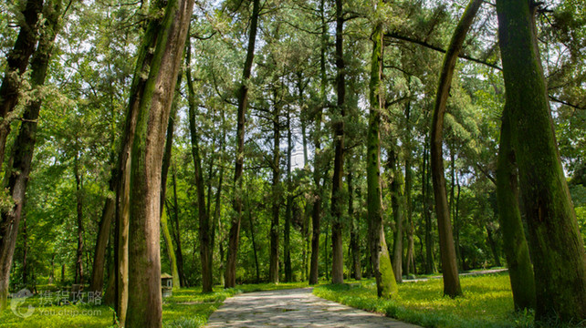 勉县南郊的武侯墓,是三国蜀汉丞相诸葛亮长眠的地方。它位于定军山脚下,墓区内山水环绕,墓上和庙内的建筑,大多是明、清两代一所三院并连的大庙。进入景区大门,扑面而来的是一片汉柏古松,显得清幽古朴。在大殿院中,有许多历代歌颂诸葛亮的诗词和复修墓庙记文的石碑。 当你进入大殿后,在大殿龛上可以看到诸葛亮端坐的塑像,纶巾,羽扇,鹤氅,神态庄严。诸葛亮的两旁是关兴和张苞两员大将,据说是关羽和张飞的后辈。诸葛亮的墓在大殿的后面,头朝南、脚朝北的方向,代表着“北顾中原,南立蜀汉”的意思。诸葛亮的墓,四周有砖墙环绕,在墓前有一个小亭子,亭子内竖有石碑,上面刻着“汉诸葛忠武侯之墓”。在墓的后面,有古桂两株,据说是汉代栽种的。 游客游玩时,建议与县城以西的勉县武侯祠博物馆、马超墓祠一并游玩。