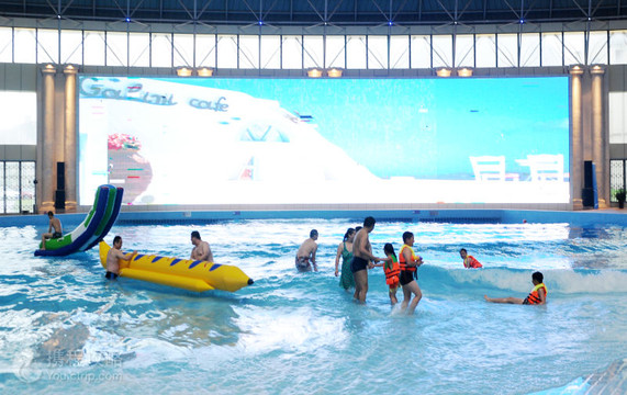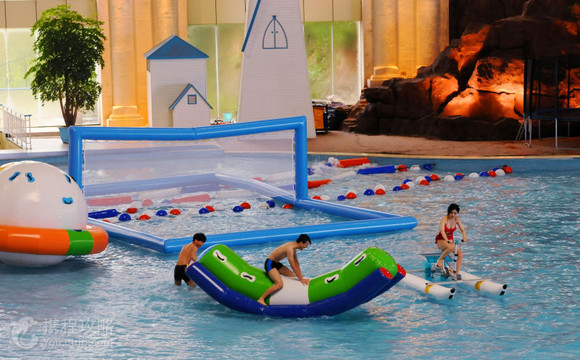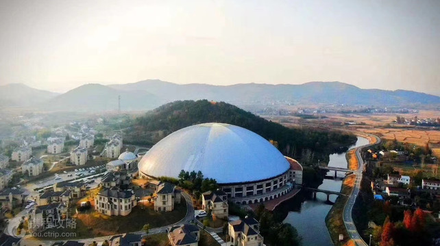 国轩温泉宫直径138米,高55米,是目前亚洲较大的穹顶式室内温泉艺术中心,整个项目由国际设计师“刘继东”亲笔设计,项目规划设计采用了中国古典哲学《易经》“天圆地方”的理念,巨大的蒙娜丽宫(天体浴场)半球为“天”,方形国轩大酒店为“地”。温泉宫共有温泉泡池18个,配有多功能水疗区、天体区、儿童戏水,5000平米造浪池,还有目前国内最长的室内玻璃水滑道,同时配有可容纳300人就餐的自助餐厅、80间欧式客房、VIP休息大厅、台球、乒乓球、充气城堡等娱乐设施,年接待游客可达50万人次