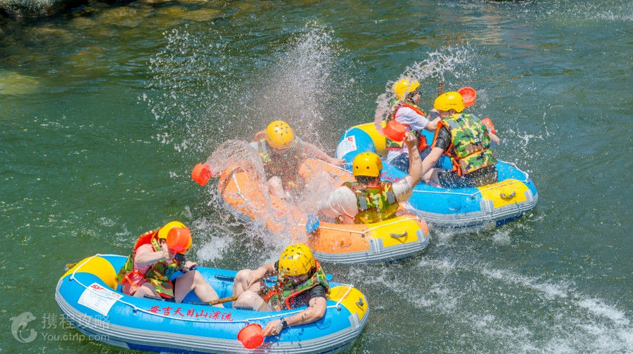 安吉天目山漂流位于著名的竹乡——浙江省安吉县报福镇统里村。漂流全长3公里,漂流完全程需1小时左右。天目山河水清澈,两岸风景优美,置身漂伐中,回环曲折、或急或缓,在领略游历高山流水的惬意之时,体会回归大自然 安吉天目山漂流所在的统里村位于安吉的南部,山区独特的自然资源及特殊的地理因素,形成特有的自然与人文景观资源。史书记载统里现址的统里古寺和处于千米以上的南天目寺庙群在当时是极具规模的古寺庙群,香火盛极一时,因历史原因,古寺被毁,但遗址尚存。