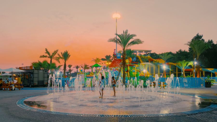 滋滋水乐园坐落于仙凤三宝景区沙滩湖下游,项目占地21500平方米,建筑室内空间占地2500平方米,同时可满足3500人的游客瞬时承载量。项目总体规划上充分挖掘场地的景观优势资源联动沙滩湖区大景观面结合打造。游乐水设备设置上主要有魔鬼鱼滑道、彩虹滑道、高速滑道、时光隧道滑道、互动水寨、儿童戏水池、造浪池、叠级游泳池、湿蹦球等特色娱乐项目。