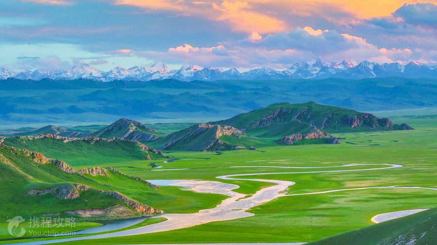 巴音布鲁克草原景区又名天鹅湖景区,位于巴音郭楞州和静县,“巴音布鲁克”在蒙语中的意思是富饶的泉水。这里的草原水草丰茂,遍布着河流和湖泊,而草原周围则由山峦环抱,连绵的丘陵和辽阔的草甸相间,景色十分漂亮。巴音布鲁克草原内有著名的巴音布鲁克天鹅湖和九曲十八弯等景观,景色美,也是摄影家们钟爱的摄影胜地。游玩巴音布鲁克草原首先要到位于草原北侧的巴音布鲁克镇,景区的大门就位于镇西南侧1公里左右。巴音布鲁克草原的面积很大,但草原上的公路就是景区内的公路。经此公路从镇上到草原深处的景点有几十公里,所以游玩草原、拍摄天鹅湖和九曲十八弯必须要购票进入景区。而且此公路上不允许私家车开入,所以景区的区间车票也是必购的。巴音布鲁克草原景区的区间车单程为45公里(行车1小时20分钟左右)。路上会停靠巴润库热庙、天鹅湖区域、巴西里克观景台(即九曲十八弯观景台)三个区域,游客在每个地方都可以尽情游玩,然后乘坐后续过来的区间车继续到下一区域。景区内的区间车是人满即开,一般旺季时半小时内便会有一趟。游玩巴音布鲁克草原的时间为每年的6-9月,其他时间则比较寒冷,景色的精彩程度也会打折扣。巴润库热庙是路上停靠的第一个地点,巴润库热指的是移动的寺庙。由于当地都是信仰藏传佛教的蒙古族,而且都是牧民,所以他们便把庙宇放在了马车上,方便在游牧时也能随时祭拜庙宇。这种牧民的庙宇十分特别,到此可以参观一下。天鹅湖是巴音布鲁克内的著名景点,是一座在碧绿草原中间安静的湖泊,每年6-9月,很多大天鹅会来此繁育休憩,场面悠静安详。此时也是拍摄大天鹅的季节,其他季节则可能会看不到。巴西里克观景台,位于一座小丘陵上,需要走一段木制栈道上去。到达观景台后,脚下就是九曲十八弯的盛景,一条彩带般的开都河在开阔的草原上逶迤蜿蜒,景色十分优美。尤其是日落时天地一片暖红,河水上反射出红色的光芒,更是无比美丽。因而这里也成了摄影家们在巴音布鲁克钟爱的摄影胜地。