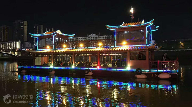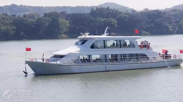 翠浪号游船为单体游船,船体采用游艇风格设计,玻璃钢架结构,线条流畅美观。游船共二层,均有独立的观光甲板。首层是综合大厅,前区配有舞台、投影仪、JBL品牌音响及KTV系统,两侧窗边配有VIP餐、茶雅座。二层是露天观光甲板,前后楼亭为VIP包厢,中间是露天观光平台,可以商务洽谈、朋友聚会及拍摄观光等。航线为湧金门码头往返,途径橡胶坝、和谐钟塔、储君庙、桃花岛、夏浒古村落、大湖州等旅游景点和地标建筑。