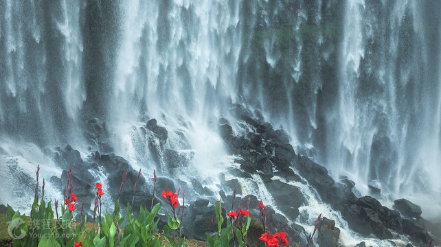 低坑大瀑布景区地处四川省广安市岳池县,系嘉陵江江岸基岩塌陷形成的。它宽约200米,高约70米,比黄果树景区宽,但高度较之要低。尽管如此,其气势,其壮美之程度,一点也不输与其他名瀑。来到瀑布旁,无不被浩荡壮丽之风貌所折服。景区以自然风光为主题,按照“一个中心、六大功能区“(即游客综合服务中心、瀑布观光区、花卉观赏区、休闲娱乐区、园田观光休闲度假区、湿地保育区、丛林娱乐区)的空间布局,打造集瀑布和花卉观光,融合生态休闲、运动养生、度假娱乐等多元素于一体的乡村休闲旅游目的地。