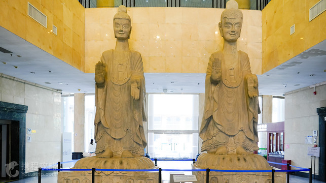 青岛市博物馆位于青岛市区东部,靠近石老人海水浴场和青岛国际会展中心。博物馆内有《青岛史话》大型基本陈列,馆藏古代书画、陶瓷器、青铜器、玉器、钱币、甲骨等丰富的文物,在饱览了青岛自然风光之后,不妨来这里多了解一些青岛的古代及近代历史。博物馆共有三层,服务台可租借语音导览器。一层为《青岛史话》大型基本陈列的上部“古韵悠长”以及临时展厅。“古韵悠长”展厅陈列了陶瓷器、青铜器、玉器、钱币、甲骨、竹木牙角器等各种文物,展现了从新石器时期至明清时期青岛地区古代历史的发展与诸多重大历史事件。二层是《青岛史话》的下部“岁月回眸”,展示了青岛从清末到新中国成立所经历的各个时期的历程与变化,可以看到许多珍贵的历史照片、战争遗存的兵器枪等展品。这一层还有书画专题展,主要有明清书画大家的作品,比如有文征明的行书诗轴、董其昌的临帖精品、林则徐的行书等。三层精彩的是明清瓷器陈列,这是青岛市博物馆的特色收藏之一,可以看到琳琅满目的瓷器精品,其中不乏名窑名作。此外,这一层还有专门的展厅陈列有漆雕、玉雕、砚墨、珐琅等古代工艺作品,另有山东民间木版年画、青岛籍画家高凤翰书画等专题展览。陈列于博物馆西区大厅中的两尊北魏石佛像,为镇馆之宝。这两尊保存完好无损的佛像已有1500年的历史,两佛都有六米高,造型基本相同,雕刻技法娴熟,神态栩栩如生。这两尊佛像原安放于临淄龙泉寺内,侵华日军曾两次预谋将其劫运日本,终未能得逞。