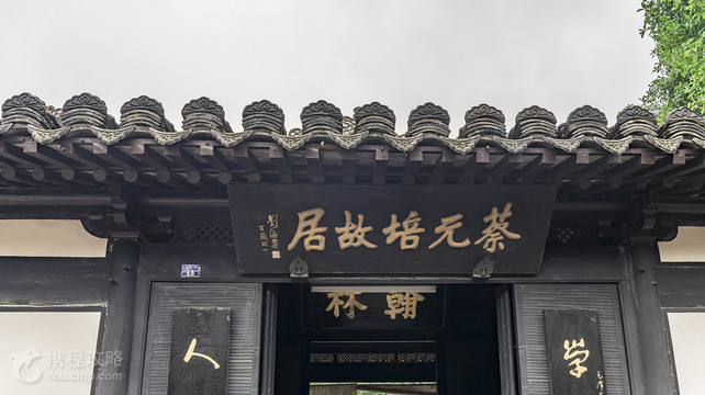 蔡元培故居位于书圣故里历史街区,是一座颇具绍兴特色的明清台门建筑。现故居大厅前厢房、大厅及两边间、座楼前西厢房及座楼西边间均辟为“蔡元培生平史迹陈列室”,介绍蔡元培先生一生的业绩。 蔡元培故居的主体建筑坐北朝南,为砖木结构,共三进。第一进门厅坐西朝东,上悬刘海粟手书“蔡元培故居”匾额;第二进厅堂和第三进楼房均坐北朝南,三进分布不在同一轴线上。由门厅通往堂厅的前天井特别开阔,差不多有篮球场那么大,周边的围墙也特别高,高墙深院,显得气势不凡。 第二进一堂两厅,已辟为陈列室,堂厅正中放着蔡元培半身塑像,颇有学者风度。