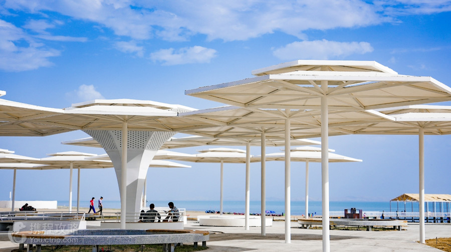 新疆金沙滩旅游度假区位于新疆巴音郭楞州和硕县,景区位于中国大的内陆淡水湖博斯腾湖东北岸,是以大湖为基础建设的一个类似海滨沙滩的游乐区,每到夏季时,这里的风光与海滨一样。在遍地干旱戈壁的新疆,这种风光十分少见,因此景区也有“新疆夏威夷”之称。景区内可以拍摄到湖海沙滩的美景,同时也有森林绿洲和芦苇荡等湿地风光,非常漂亮。在临湖一侧,是一处自然的沙滩浴场,这里有游泳、水上冲浪、潜水、沙浴、日光浴、垂钓、划艇、水上降落伞、快艇、摩托艇、淡水洗浴、沙滩足球、沙滩排球、沙滩摩托、水上飞机等新疆难得一见的娱乐项目,可以一一体验。景区内有度假村和宾馆,可以在这里休闲度假。