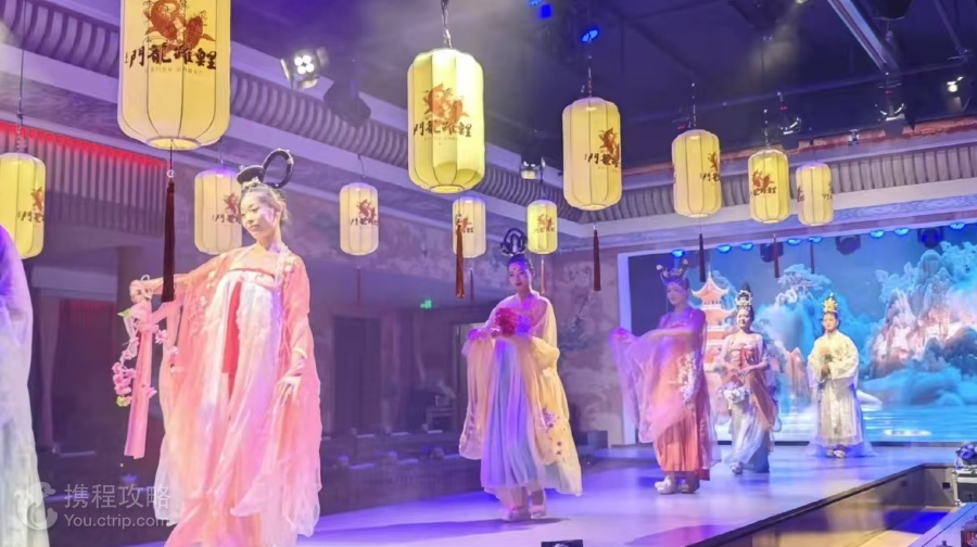 龙门宴乐是洛阳文旅集团旗下打造沉浸式演出体验,位置就在龙门石窟景区西北服务区龙门古街内,龙门古街地上停车场进入后第一家即可看到,演出时长将近1小时,是专业的爱好洛阳的演员集体呈现的一场美味赏剧体验,每人一张正座,同时配备有茶点/餐饮,感受一次大唐客的潇洒……