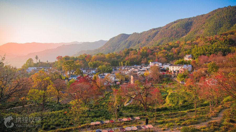 塔川位于宏村与木坑竹海中间,距两者的距离都是2.5公里。这是一座徽派小村,又名塔上,因古民居依山而建,层层叠叠形如宝塔,又有溪流穿村而过而得名。塔川出名的要属秋色,每到深秋,总能吸引无数长枪短炮。10月中下旬塔川刚开始入秋,11月下旬才是看秋色的佳时间,届时漫山遍野的乌桕树呈现绿、黄、红的斑斓色彩,田地里白墙黑瓦的小村升起袅袅炊烟,景色如油画般优美。建议提前致电当地客栈咨询一下红叶情况,否则没看到秋色的话可能会失望。其实塔川的田园风光也不错,可是和秋色比容易造成人的心理落差,村子里的老房子也无法比拟宏村。秋季102乡道堵车严重,从宏村到塔川可以选择徒步,几个观景台都在102乡道上,有指示牌标出。第一个拍摄点在塔川以西约200米,能拍到塔川、横川村。第二个拍摄点要从乡道爬到一个小丘上,可以拍塔川的全景。沿乡道再前行150米是第三个拍摄点,能拍到塔川、横川村。继续向前拐过一个弯道,路右边有高出乡道的小丘,上面的第四个拍摄点也能拍到塔川、横川村。第五个拍摄点在宏村隧道口,视野开阔,能将协里、丰登村、奇墅湖一网打尽。102乡道是大众徒步路线,如果你有更多的时间,可以绕道走宏村-丰登-协里-塔川-宏村环线,沿途是一派田园风光。从宏村南湖出来不要往北走102乡道,而是往东南走066乡道。先看见奇墅湖,湖边可以拍日出和扎帐篷。沿着湖畔走经过酒店协里山庄后遇岔路,选择北边那条,经丰登村后一直往北可以到达协里村。在协里问问当地人怎么上公路,离协里近的是102乡道上的宏村隧道。往东过隧道就是木坑竹海,沿102乡道往西则能到达塔川、宏村。环线不难走,基本是柏油路。从宏村到协里山庄约2公里,协里山庄到丰登村约300米,丰登村到协里约2公里,宏村隧道到塔川约2.5公里,塔川到宏村约2.5公里。一天之内就能走完环线,由于黄昏、清晨是佳拍摄时间,建议摄友下午从宏村出发,晚上在木坑竹海或者塔川住一晚。塔川、木坑竹海的住宿条件都还可以,有独卫、热水,如果想要住得更好,可以住在宏村。宏村、协里山庄、协里、木坑竹海、塔川都有吃饭的地方,菜肴以冬笋、土鸡等乡村土菜为主,时令蔬菜都很新鲜,秋天还可以向当地人买点柿子吃。