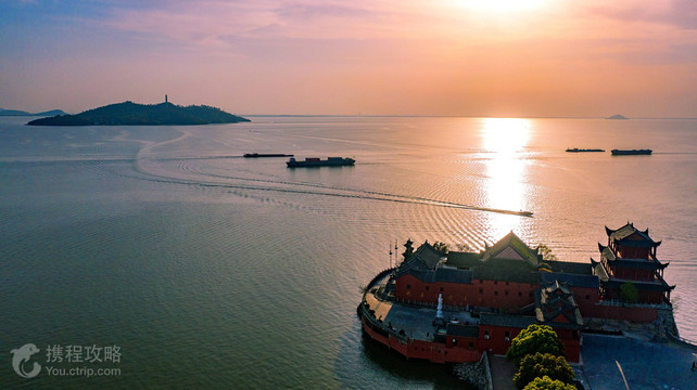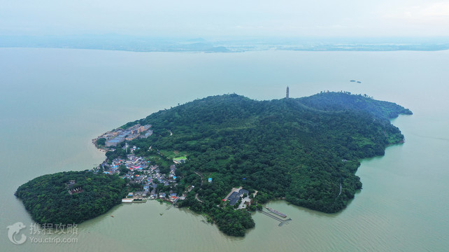 姥山岛是巢湖第一胜境。位于中国第五大淡水湖巢湖的湖心,是湖中的岛屿,面积约100公顷。岛上三山九峰,林木葱郁,四季常青,为八百里巢湖惟一的“湖上绿洲”。 姥山岛人文景观丰富。南麓,有一天然避风良港,旧称“南塘”,系元末抗元将领俞通海、廖永安等率水师屯寨姥山时修。 山腰望湖而建的圣妃庙,祭祀主湖女神,始建于晋朝。如今圣妃庙依然香客如云,热闹非凡。岛麓还有一华藏净寺,始建于三国之后两晋之初,约有一千八百年历史,香火一度兴盛百里巢湖。 山巅的文峰塔建于崇祯四年,登塔凭栏远眺,但见水天一色,群鸟飞翔,令人心旷神怡。离塔不远处,有座圣姥庙,春秋祭祀焦姥。红楹青瓦掩映在苍松翠柏之间。 文峰塔:系明崇祯四年(公元1631年)建,甫成四层,因战乱而辍工。清光绪年间(公元1878年),李鸿章倡捐,委江苏补用道、庐州人吴毓芬续建三层完工。工成,李鸿章题“文光射斗”四个大字,并作《姥山塔碑记》一文刻之于石。 塔高七层,51米,133级,塔系条石青砖结构,层层飞檐走角,八角对着八方,角角装有铜铃,外观雄伟,结构精巧。塔身由外壁、回廊、塔心三部分组成。人入塔内,门梯交错,左拐右旋,乐趣无穷。 每层塔壁四周或题词,或诗文,或砖雕佛像。塔内藏有两广总督李瀚章题写的“举头近日”,台湾首任巡抚刘铭传题写的“中流一柱”等25幅匾额和802尊砖雕佛像。 人立塔上,只觉风声呼啸,铜铃叮当,如立云端之上。倚窗远望,烟波浩淼,渔帆点点;近观脚下,姑、鞋二礁如在雾中。 塔刹上镶嵌有李鸿章全像。李鸿章发迹前,曾得益于恩师曾国藩的指点,集结淮军在湖上操练,并留下了一首气势磅礴的七言绝句:“巢湖好比砚中波,手把孤山当墨磨。姥山塔如羊毫笔,够写青天八行书。