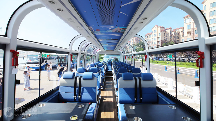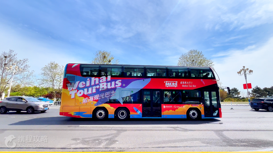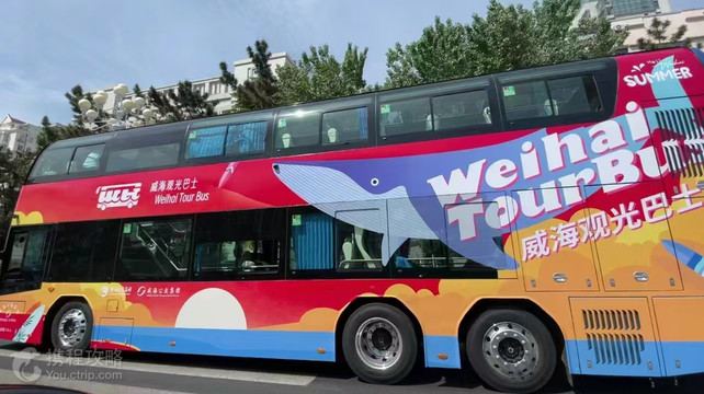 威海观光双层巴士:4.2米的高车身,穹顶天窗的大视野,宽幅高背座椅,绿色高效纯电驱动,乘坐舒适度满分。靓丽的红色车身,辅以大海、日出、鲸鱼、海滩等极具城市特色的设计元素,出行回头率满分。游览时,游客可以通过观光巴士的二层车厢,从更开阔的视野、不同的角度看窗外的山海景观。威海观光全景巴士:宽敞透亮的车内空间,还有360度的全景车窗,柔软舒适的座椅、头枕、扶手、充电口等配套,每一处的细节都让我们的观光之旅更加惬意,而他的贴心不止如此。在酷热的午后,车内却能直降10度,时刻保持清凉。而且它是PVC隔热片加低透光率玻璃,搭配辐射制冷膜,可以阻隔99%的紫外线,70%的红外线,无需防晒衣防晒帽我们可以肆意穿搭,美美的坐在车里拍照就可以啦。