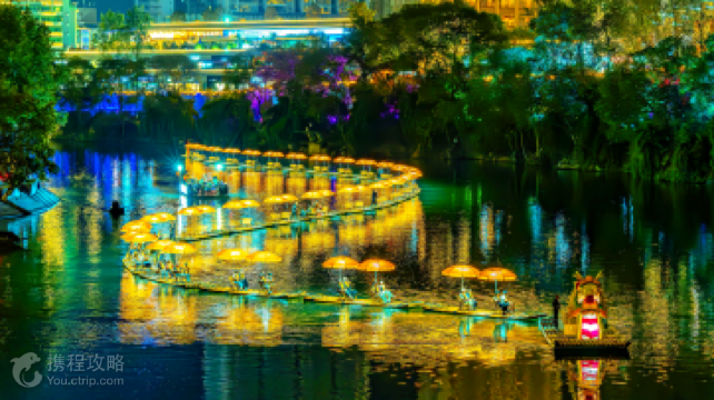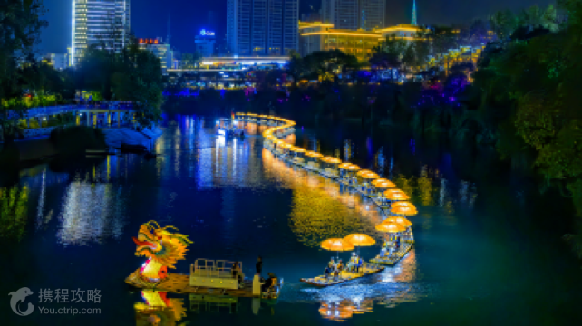 “铜仁浪漫,龙游锦江”项目就坐落充满魅力的中南门古城附近。铜仁龙游锦江由贵州元璞旅游有限公司倾情打造,以中南门古城、锦江河为轴心,围绕“景城一体,主客共享”的理念,集水上竹筏游船、民俗歌舞表演、沉浸式剧情演绎为一体,打造了一个丰富的综合类夜游体验,是一场融合历史文化与现代休闲体验的特色之旅。