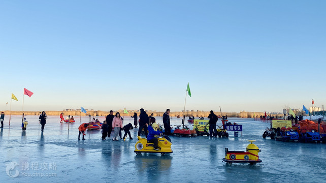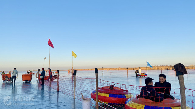 阅海公园滑雪场可算是基础滑雪场。滑雪道建立在人工堆筑的土山上,地势没有那么险峻,坡道也不太陡峭,对于一般的爱好者和初学者来说,这就足够了。阅海滑雪场的一个优势是,它与附近的冰面接壤,除了雪地上的娱乐项目以外,游客还可以在冰面上找到更多的乐趣:在冰上打老牛、溜冰车,甚至可以亲自动手做些冰塑、雪雕等。这些项目更适合家庭出游,父母孩子都能各得其乐。阅海鱼宴远近闻名,一种鱼百种做法,却各有滋味,非常适合全家出游后的团员餐。