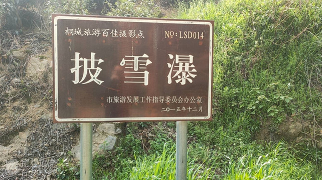 披雪瀑,古名披雪洞(一作“披云洞”),又名响雪泉,位于市城西北4公里之碧峰山下,地属碧峰街道办事处石板村。瀑流飞泻直下,如雪帘高悬,故名 。瀑长900米,全瀑分三段:前为“迭瀑”,长约50米,瀑流滚迭,溅珠飞玉,称之为“前瀑”;中为“溪谷”,称“披龙”,长约800米,雪浪翻滚,奔腾直前;后为“悬瀑”,高约50米,瀑流长悬,雪崩雷鸣,称之为“后瀑”。后瀑左崖有一洞,名“披雪洞”,吴用珍有诗描写瀑景云:“巨灵怒试劈山手,铁壁双开万仞陡。 披雪瀑风景秀丽,《古今图书集成.职方典》记其胜:“碧峰山,峰峦分列,一洞逶迤。沿涧而人,四方稍觉豁如,倚南一山,壁立千仞,怪石嶙峋,下有四洞……方至洞口,见瀑水悬崖如练。至前仰视,如白鹭之攒集,如风雨之飕飓,即“披雪洞”也。两旁皆巨石,水啮者利若刃,水凿者深若井,水拭者净若几”、“飞瀑异石,绿荫清潭,堪称负郭胜境” 。 前人取“不阴常雨,盛暑犹雪”之意,曾建“暑雪亭”于瀑旁。