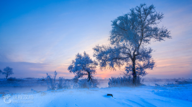 雾凇岛位于吉林市北部30多公里处的乌拉街满族镇,它是松花江上冲击而成的江中小岛,是中国知名的雾凇观赏胜地。吉林雾凇与桂林山水、云南石林、长江三峡同称为中国四大自然奇观。这里的雾凇多而美,是常能拍出风光大片的摄影胜地。每到寒冬,不冻的江水中升腾的水雾遇冷,在树上凝结为霜花,从远处看正是传说中的玉树琼花,美不胜言。雾凇本是可遇不可求的自然奇观,但这里能看到雾凇的概率较高,尤其是每年12月中下旬至次年2月底,是观赏雾凇的好时节。但形成雾凇需满足特定的天气条件,建议通过吉林旅游局的微博来关注天气情况,通常若有中到大雪,且气温在零下20度以下,出现雾凇的可能性就很大。从岸边需坐摆渡船上岛,岛上的曾通屯是欣赏雾凇的好去处,这里树形奇特,沿江那些挂满了霜花的垂柳,在江风吹拂下银丝闪烁。如果想来感受一下雾凇之美,可以坐一大早的车从吉林市过来,9-11点间适合观赏雾凇,然后下午返回,一天就够了。不过若是时间充裕,还是建议在这儿住一两晚,傍晚可以拍日落,第二天则可以早起看日出,然后接着拍雾凇。此外,岛对岸的韩屯村也是不错的观赏雾凇之处。住宿可以选择住岛上的曾通屯,或者韩屯村,都是当地农家提供的火炕通铺,一般是每人100-150元包吃住。当地的菜肴是常见的东北农家菜,酸菜扣肉味道不错。冬季的景区非常冷,一般有零下20-30度,一定要穿厚实的羽绒服和高帮防滑的雪地鞋,而棉帽、口罩、滑雪手套、围巾则一个都不能少,偶尔来东北的南方游客,出门前可以贴几张暖宝宝。