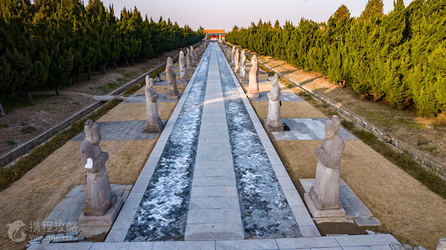 明皇陵位于凤阳县城南七公里处,是明太祖朱元璋父母陵墓,初建于吴王时期元至正二十六年,明洪武二年后又两次大规模修建,明洪武十二年年竣工。陵园占地2万余亩。当时有城垣三重,周长二十八里,其内“宫阙殿宇,壮丽森严”。享殿、斋宫、官厅数百间。历经600余载,虽经多次兵乱,但陵前神道上的三十一对(原为三十二对)石象生和皇陵碑、无字碑及坟丘等保存完整。皇陵碑文为朱元璋亲撰,石象生数量之多、刻工之精美为历代帝王陵之冠,1982年,被列为全国重点文物保护单位。