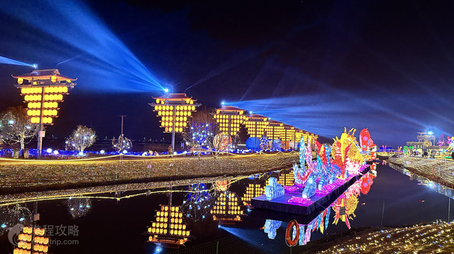 瑞安曹村迎春灯会昨晚在天井垟万亩农田景观区举办。灯会以“打卡中华进士村·梦回千年不夜城”为主题,以“看状元,考状元”为标语,融合古时非遗技艺与现代创新灯光艺术。