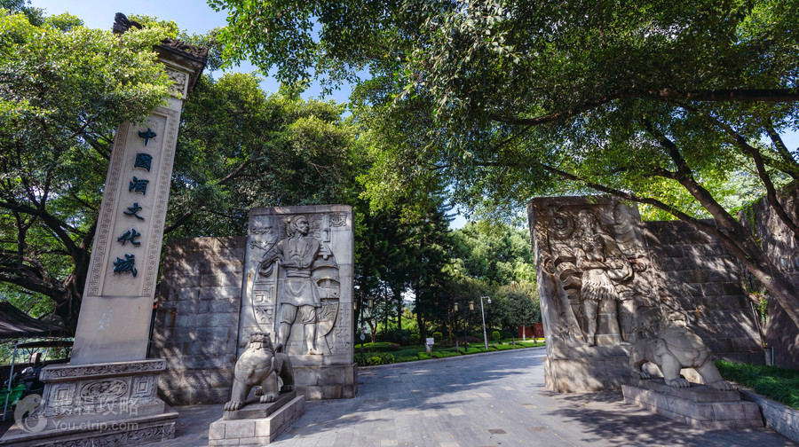 中国酒文化城,是茅台集团于1993年至1997年投资修建的,是目前世界上规模较大的酒文化博物馆。1998年被中国文联确定为“中国书画艺术家创作基地”,2000年被列为“全国工业旅游示范点”,2014年被评为国家AAAA旅游景区,2017年被批准为贵州茅台酒博物馆,是贵州省爱国教育基地、遵义市爱国教育基地、遵义市中小学研学实践教育基地。2021年被贵州省归国华侨联合会评为“贵州省华侨国际文化交流基地”。2022年被评为贵州省首批“十大酒旅融合景区”。2023年荣获贵州省文旅融合创新提名示范项目、遵义市铸牢中华民族共同体意识教育实践基地、仁怀市青年文明号等多项荣誉。 它占地面积3万平方米,建筑面积1万多平方米,是集雕塑、书画、藏匾、碑刻、文物、实物酒品于一体的酒类博览馆。设有中国酒源馆、中国酒技馆、中国酒韵馆、中国酒俗馆、中国酒器馆、茅台馆茅台·名酒世界馆等七个展馆,系统介绍了中国酒的起源、酿造技术、酒俗酒韵、茅台酒的发展历程及独特工艺,中国各地名酒品牌及历史、世界蒸馏酒文化、葡萄酒文化等。 景区通过讲好中华博大精深酒文化故事为主线,淋漓尽致展现了中国酒文化,立体呈现了中国建筑文化,延史追溯了中华灿烂文化,系统展现了茅台酒见证中华民族伟大复兴峥嵘历程,积极弘扬中华优秀传统文化。