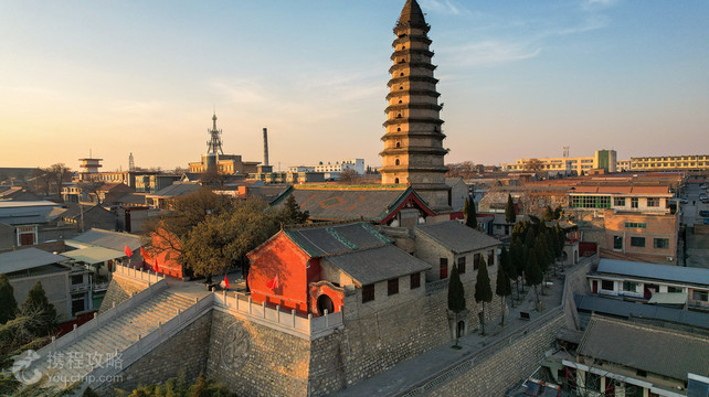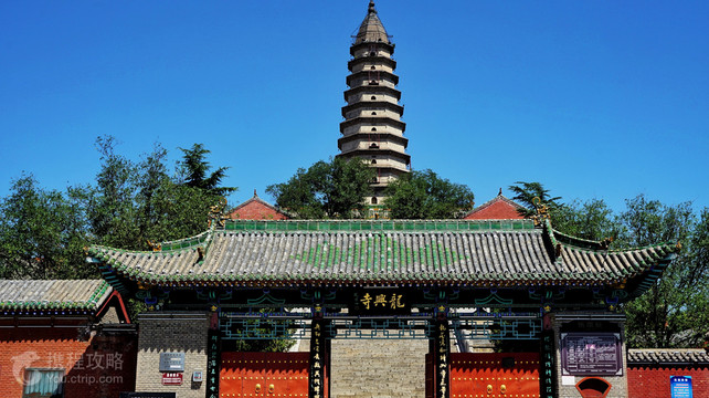 龙兴寺始建于唐,现存主体建筑为元代以后复建。龙兴寺大殿为元代遗构,内现存三世佛及胁侍菩萨九尊彩塑,塑于金代,为宋金彩塑之精品,世所罕见。龙兴寺内所存唐高宗时期所建碧落碑,为古文书写之碑文,被誉为中华汉字演交史之见证。寺内龙兴寺塔原为唐塔,清乾隆年间重包以外皮,并由八级增高至十三级,可攀登。