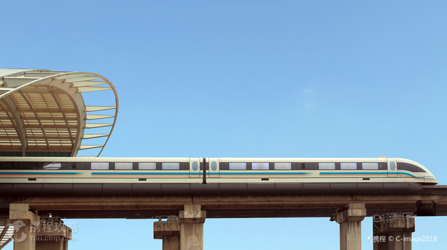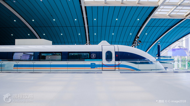 上海磁浮列车西起地铁二号线龙阳路站,东至浦东1号2号航站楼站,线路全长30公里,单线运行时间仅为7分20秒,是世界上第一段投入商业运行的高速磁浮列车,发车间距时间为15至40分钟。 磁浮列车利用“同性相斥,异性相吸”的原理,让磁铁具有抗拒地心引力的能力,使车体完全脱离轨道,悬浮在距离轨道约1厘米处,腾空行驶,创造了近乎“零高度”空间飞行的奇迹。 磁浮列车设计时速430公里/小时,实际时速约380公里/小时,转弯处半径达8000米,肉眼观察几乎是一条直线,最小的半径也达1300米。乘客不会有不适感。轨道全线两边50米范围内装有目前国际上先进的隔离装置。磁浮列车的车窗是减速玻璃,乘客可以更好的观赏窗外的风景。 减速玻璃在与车体接触的边缘处有弧度变形,正因为这个弧度可以使车外景物在透过弧度时发生变形,从而影响车内乘客的视觉,产生减速的效果。并且在挡风玻璃边缘都有渐淡的点状黑色装饰边,同样也起到一定效果。