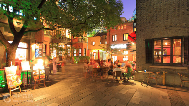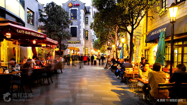 靠近淮海路的新天地由老上海石库门弄堂改造而成,如今不仅成为了中外游客的必到之地,更是本地年轻人经常光顾的时尚场所。白天来此看美女街拍,悠闲品味下午茶,晚上则可以穿梭于各个酒吧之间,体验夜上海的生活。 相对于田子坊的拥挤窄小,新天地要显得更为大气宽敞一些。餐饮、商业、娱乐、文化各类店铺在一条笔直的步行街上整齐有序地排布,漫步新天地,依旧是青砖步行道,红青相间的清水砖墙,厚重的乌漆大门,仿佛时光倒流,有如置身于二、三十年代的上海。但跨进每个建筑内部,则非常现代和时尚。兴致来时,你也可拐进一边的小弄堂里绕上一圈,游客稀少的小弄堂会是拍照的好地方,你会看到很多专业摄影师到这里来取景。 新天地分为南里和北里两个部分,南里紧邻地铁10号线新天地站,以现代建筑为主,石库门旧建筑为辅。这里进驻了多家有特色的商户,不仅可以吃到中式料理鼎泰丰,还有每次都需要排队的小山日本料理,更有来自意大利的马上诺匹萨以及歌蒂梵巧克力饮品店。除了来自世界各地的餐饮场所外,这里更建造了一栋新天地时尚购物中心,这座充满现代感的玻璃幕墙建筑物,汇集了如Vera Wang的中国旗舰店、明星潮人店阿信的StayReal、林俊杰的Smudge等知名潮店,更有美食广场、UME新天地电影院以及一站式的健身中心。 北里紧邻淮海路商圈,入口处的北里广场上有一座“幸福之泉”,上面有“福、禄、寿” 三星高照的铜像,可以在此拍照留念。这里由多幢石库门老房子所组成,并结合了现代化的建筑、装潢和设备,化身成多家消费场所及餐厅,菜式来自世界各地,充份展现了新天地的国际元素。除了俏江南、采蝶轩等知名餐馆外,北里的酒吧也非常多,丰富你的夜生活。