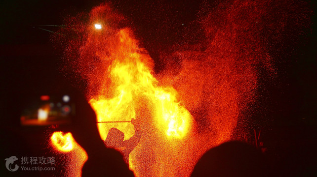凤凰样子文化村深嵌于凤凰古城沱江之畔,以沉浸式民俗体验成为湘西文旅新地标。青石板巷间的仿古吊脚楼群勾勒出烟雨湘西的旧时风韵。入夜后,山水实景剧场将《凤凰样子》的帷幕徐徐拉开:土家族茅古斯舞的原始张力、《边城》的光影重现、百人银饰盛装的璀璨星河,在沱江倒影中交织成流动的文化史诗。 更鲜活的是篝火升腾的互动时分:游客可围着跃动的火焰学跳摆手舞,或是屏息见证千度铁水泼洒成金色火树的非遗绝技。夏季泼水狂欢、冬季长龙宴等时令活动增添了许多野趣。亲子家庭还能在非遗工坊体验苗绣扎染。这里无需刻意寻找风景,每处转角都生长着苗疆大地的温度与故事。