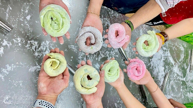 葱多饼DIY体验,多种颜色可现场选择,亲手制作五彩缤纷的马卡龙葱多饼大家一起来合影,留下「葱」满回忆的照片吧!马卡龙葱多饼制作完成后,仍能现煎现吃相约亲朋好友,一同到葱宝宝体验农场采葱及制作葱油饼吧!