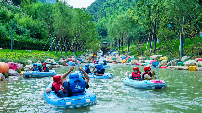 隐将谷瀑布漂流全长约2.5公里,融合玻璃漂段和自然河道漂段,且包含16处自然落差滑道,高低单落差达7米,漂流体验时长约1.5小时,兼具速度感与趣味性。依托原始峡谷河道,保留天然巨石阵、溪潭、瀑布等景观,沿途可观赏层叠瀑布、翠竹林海、怪石嶙峋等自然景观,水质清澈见底。河道分为激流段与平缓段,既有落差达数十米的惊险滑道,也有适合亲子戏水的浅滩区域。