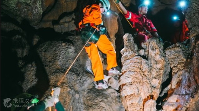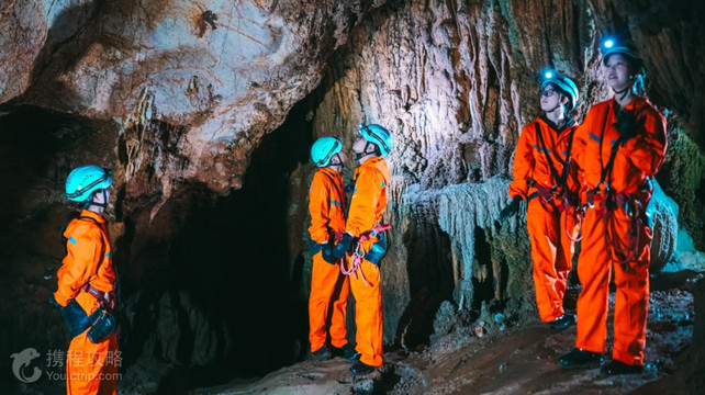 中国天眼·星洞探险距离中国天眼景区5分钟左右的路程,于天眼形成观天探地路线。更深入了解贵州喀斯特地貌形成历史。中国天眼·星洞探险不同于常规的观光旅游,因为我们将会进入原生态的自然溶洞。所以在开始探索之前我们需要在大本营完成必须的行前培训。在行前培训中我们将学会如何穿戴个人安全装备,包括头盔,头灯,探洞服,安全带等。并且领队会介绍我们此行的教练团队,讲解必要的安全知识。所以行前培训非常重要,认真参加行前培训可以让我们的探险之旅更加得心应手。完成行前培训以后,我们就正式开始了探险的旅程,从大本营出发,需要徒步大约10-20分钟即可到达洞口。这一段路是我们探险行程的一个热身,大家可以通过一小段徒 充分激活身体,为后面洞穴中的穿行做足准备。中国天眼·星洞探险独特的构造让他拥有众多的探险体验,我们在洞穴内将使用自主研发的洞穴不间断保护系统,在黑暗湿滑的洞穴里也不会发生迷路或者滑坠的风险。中国天眼·星洞探险里的海洋生物化石,石柱,石笋等各种各样各样的洞穴沉积物是天然的地质课堂,教练将会在真实环境下带来一堂生动的地质课堂。当然还有更多的体验项目需要保密,如果提前知道了一切就没用了探索未知的乐趣。完成黑暗洞道的穿行后,我们将会从洞口乘坐溜索在一个宛若世外秋源的天坑返程。