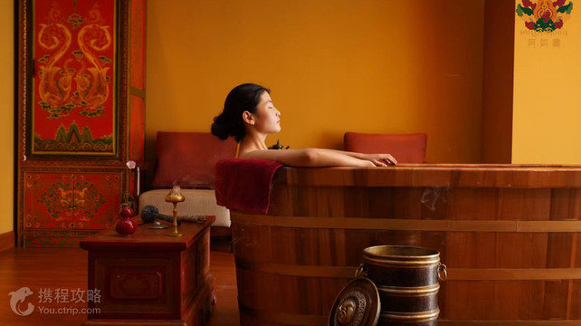【起源传说】藏药浴的起源,有一个美丽的神话传说。相传,公元8世纪,大成就者莲花生大师从印度到雪域高原弘法时,看到众生病苦缠身,心生无限悲悯。他嘱托十二位仙女山神各寻一处温泉,凝聚天然药石以为甘露。生病的人只要在甘露温泉里泡过之后,身心都得到了康复。后来,这便成了藏族民众世代相传的民间传统。每年藏历七月上旬,天上升起药神化身的“噶玛堆巴”星之时,藏地迎来沐浴节。男女老少共沐圣洁之浴,借用甘露灵性之水,在天然藏药的浸润中,让身体和心灵都得到安康。【历史和世界非遗】藏族先民的智慧和经验,经过历代藏医大师的继承和发展,创造出了理论深邃、验方丰富的五味甘露藏药浴法。它最早记载于公元8世纪编写的藏医经典《四部医典》,至今已有1300多年的历史,《四部医典》专门详细论述了藏药浴的适应症、方剂和具体应用方法等内容,对五味甘露浴的评价极高。