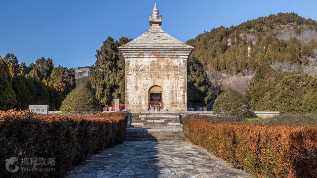 四门塔位于山东济南历城区柳埠镇东北方4公里处,是中国现存的隋代石塔,也是中国现存早的单层庭阁式石塔。它原属神通寺,该寺始建于前秦皇始元年(351年),是山东境内早的寺庙,后来庙宇毁于清末大火,剩下四门塔、龙虎塔、九顶塔、墓塔林、摩崖造像等佛教遗址。其中,此塔建于隋朝后期,距今已有一千三百多年,是目前中国现存古老的单层亭阁式石塔,该塔呈平面四方形,用当地出产的大青石砌成,非常坚硬,一千多年来尚无风化侵蚀的情况。该塔的塔身通体由巨大的青石砌成,单层,正方形,高15米,边长7.4米,四面各开辟一个拱门,故而俗称“四门塔”。此塔由塔基、塔身、塔檐和宝顶组成,塔身上用石块垒砌挑出五层作为塔四角攒尖的锥状屋顶,上置石刻塔刹。塔内正中央有一个四方平台,平台上有一座方形塔心柱,塔心柱上方以十六块三角形石梁和塔身相联系住塔顶。塔心柱四面各有一尊主佛像及左右二尊菩萨和弟子,目前剩下主佛。每尊佛像都是用整块大理石雕刻而成。佛像皆螺发肉髻,颜面丰润,细眉慈眼,隆鼻长耳,嘴角上扬,安详恬静。这些佛像雕刻细腻传神、刀法流畅、文饰清晰,极富中国文化、艺术的审美精神,是珍贵的佛教艺术品。