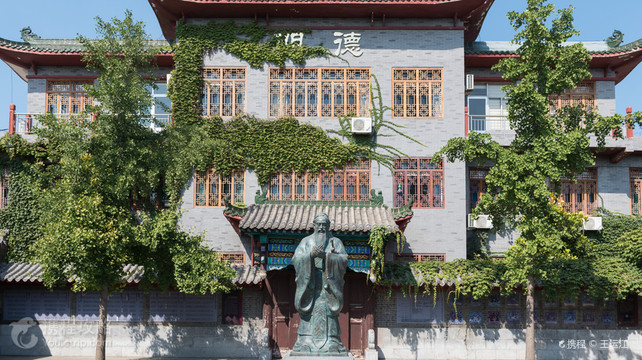 青州府贡院位于青州古城的卫街(即东门街),明代时先为山东布政使司衙署,迁历城后渐渐驰废,后辟为云门书院,为学子读书治学之地;直到清雍正四年,云门书院成为专门的"学使按临之所,遂专考院之名",此后该处便一直是青州府考取秀才的贡院,俗称考院。历史名城深处的"青州府贡院",见证了大量历史人文。青州府贡院昭示着古青州厚重的文化积淀,展厅内既有对科举制度的介绍,又有跟科举考试相关的大量实物资料,可谓内容丰富琳琅满目。走进科举博物馆,首先映入眼帘的是院子中央 至圣先师孔老先生的行教像,另有东西展室各三间。东展厅展示的科举制度简史、青州历史名人及实物:考试的课本、学生的习字本还有考试的作弊小抄(看来作弊也是有历史渊源的);还专门仿制了一间考棚,一位书生坐在桌前,左手托腮冥思苦想认真作答,桌上一笔一纸一砚台,桌下还有一食盒,这考生要在这里呆九天啊!西展厅内展示的青州科举名录与状元文化,有进士名录、文武状元画像及介绍;还专门展示了赵秉忠的状元卷复制本及其他实物如家族谱、文集;东南及西南的两座八角楼分别展示了古代的书房及教育、青州府的书院、青州府的科举名人、牌坊…… 科举博物馆北墙上有封闭的仪门,仪门两侧是中国历代文武状元名录以及清代不同品级的官服画像,仪门外紧临着云门双语学校四层楼高的外墙,上书“明德” 两个金晃晃的大字,在夕阳的照耀下格外醒目,提醒着我们办学育人的目标与宗旨。